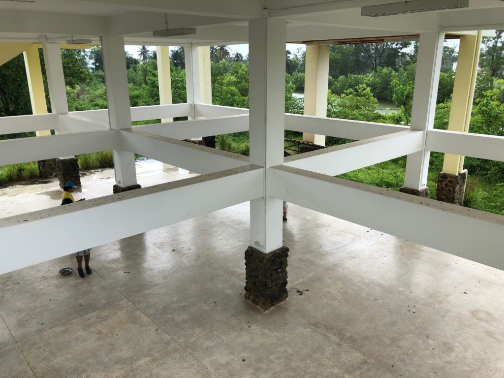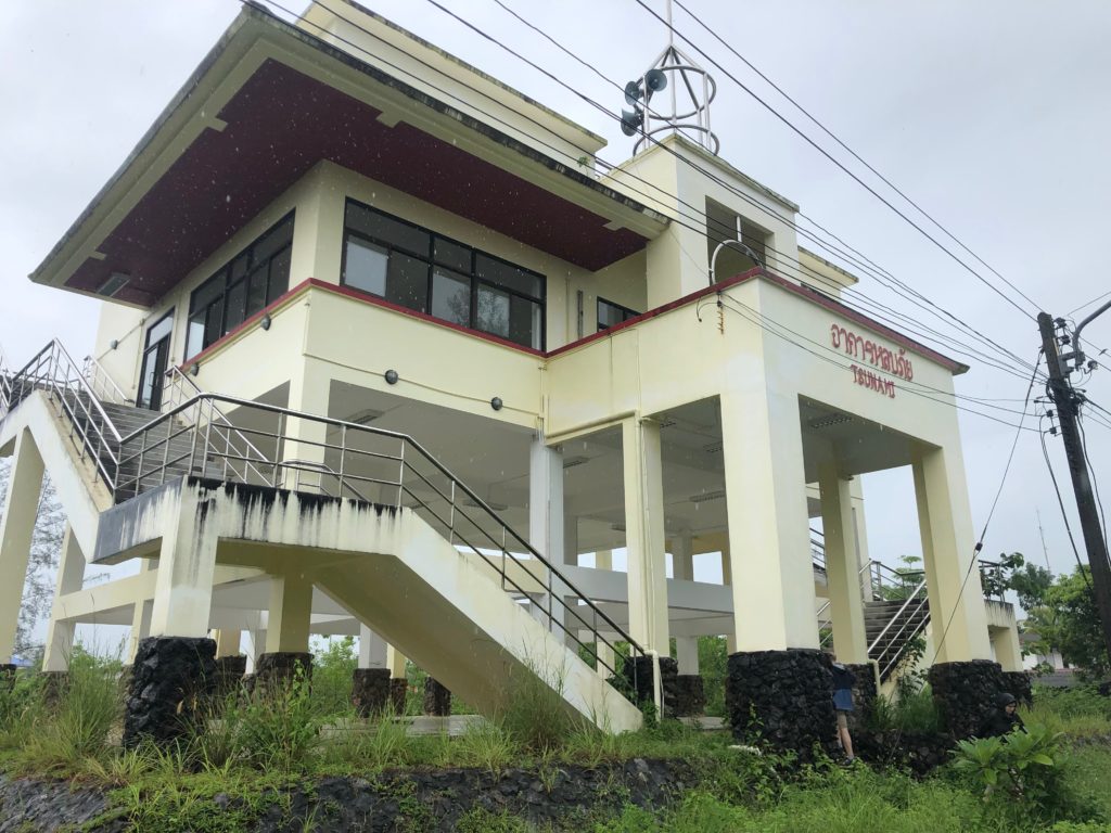 The tsunami emergency shelter can be seen in the photo below. The entire first floor is open with four reinforced concrete columns holding up the other two floors. This shelter was built for the elderly, disabled, and children to evacuate to. It’s means we’re for people who cannot reach high elevation easily. Sirens were mounted on the third floor for alerting the locals when a tsunami was coming. The lead engineer in the design of the shelter was Dr. Ruangrassamee from Chulalongkorn University (He’s the man in the yellow shirt!)